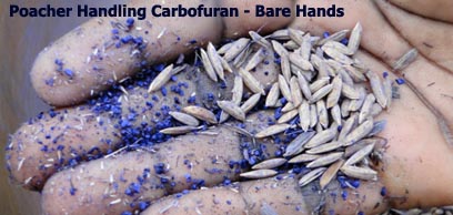 An exposé survey (http://stopwildlifepoisoning.wildlifedirect.org/furadan-in-kenya/) in 2007-2008 revealed that biodiversity poisoning in Kenya was a common practise flourishing in latency with the technique used to kill domestic vermin such as rats, livestock/human predators like lions, wild dogs, raptors and even crocodiles as well as dealing with intrusion such as migratory wildebeests on domestic livestock pasture and also exterminate rabid dogs. Besides it was found to be a technique for solving domestic disputes where the offended partner kills the unfaithful spouse!